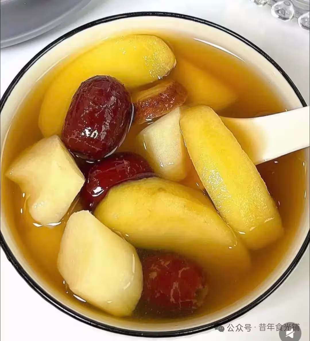 山藥的粉糯裹著蘋果的清甜,喝到肚子裡像揣了個小暖爐。中醫說山藥「健脾止瀉」,蘋果「收澀生津」,夏天孩子吃了冰西瓜、吹空調肚子受涼,拉軟便、次數多,喝這個水最穩妥。喝完小肚子暖暖的,上廁所也沒那麼急了。