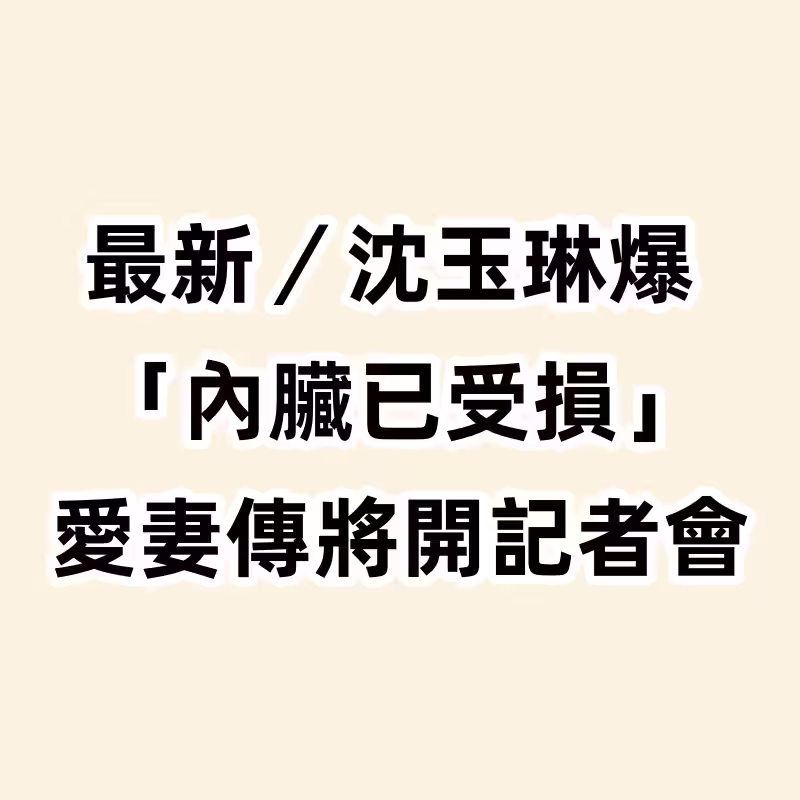 最新/沈玉琳爆「內臟已受損」! 愛妻傳將開記者會