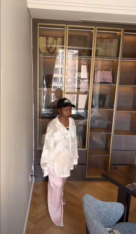 從她擺放包包的柜子來看,全部都是名牌,LV,香奈兒,愛馬仕,古馳,普拉達等奢侈品應有盡有。