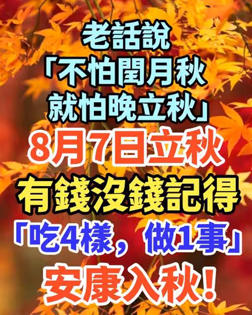 8月7日立秋,有錢沒錢記得「吃4樣,做1事」安康入秋!