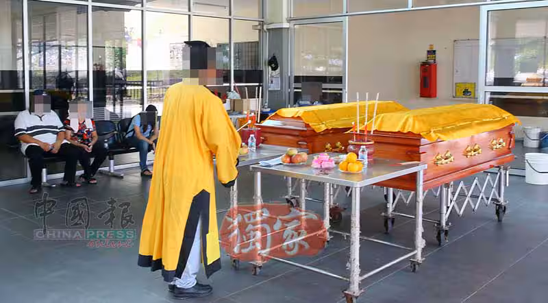 根據觀察,死者前夫和相信是親屬的數名男女,較後也陸續抵達火化場,並按照殯葬業者的儀式,在2名死者的靈柩前,進行拜祭和上香儀式,場面哀愁。