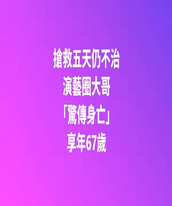 快訊/搶救五天仍不治!67歲演藝圈大哥「驚傳身亡」死因曝光!