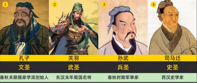 我國古代有十大聖人,他們分別是文聖孔子、武聖關羽、史聖司馬遷、醫聖張仲景、書聖王羲之等,這十個人分屬於不同的領域,占據各領域的巔峰。