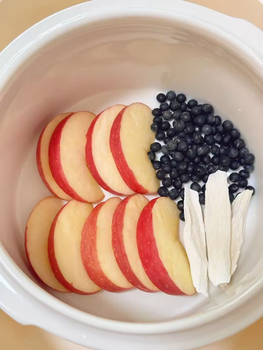 食材:青仁黑豆 30克,蘋果1個,紅棗5顆,枸杞一小把。