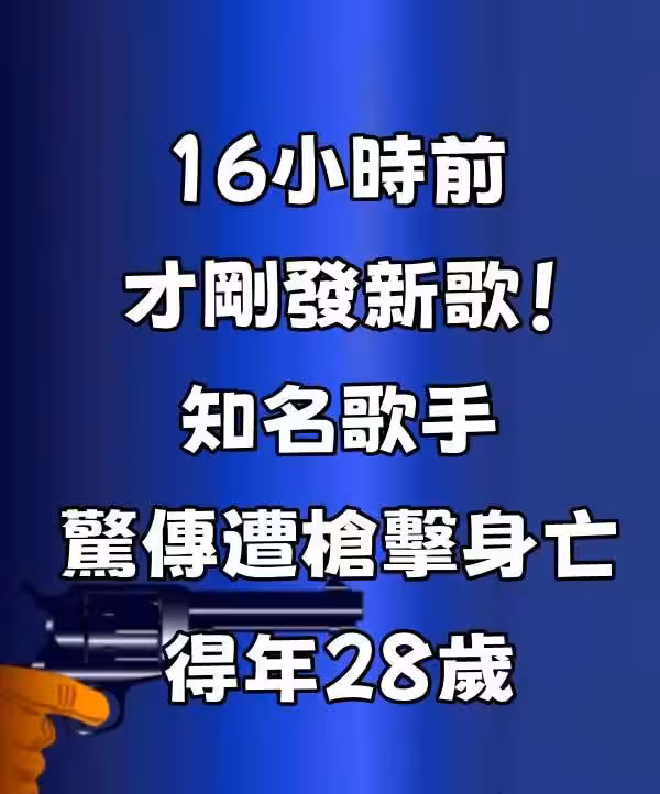 快訊/16小時前才剛發新歌!知名歌手驚傳遭槍.擊身.亡 得年28歲。
