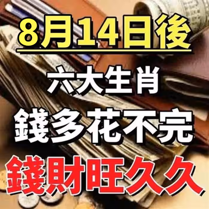 8月14日後錢多到花不完,六大生肖錢財旺久久