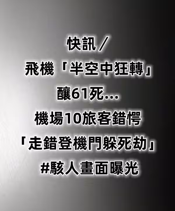 快訊/飛機「半空中狂轉」釀61死... 機場10旅客錯愕「走錯登機門躲死劫」 駭人畫面曝光