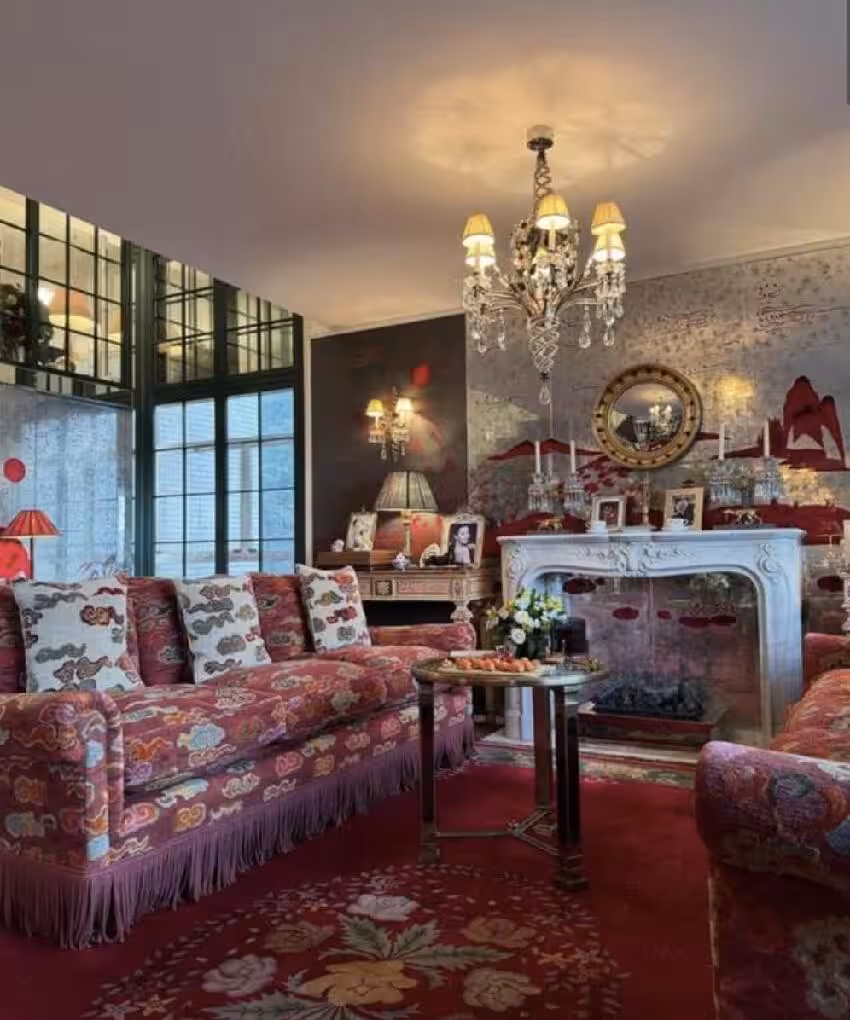 經過張叔平設計後,這套豪宅充滿了的復古的特色,裡面的家私、擺設都很有講究,其中紅色流蘇復古沙發是標誌,總之充滿了藝術感,看來很有格調。