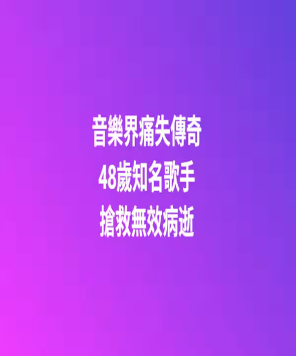 快訊/音樂界痛失傳奇!48歲知名歌手「搶救無效病逝」