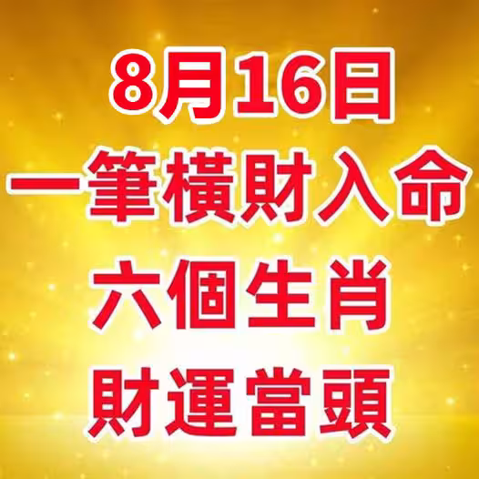 8月16日會有一筆橫財入命,六個生肖財運當頭.