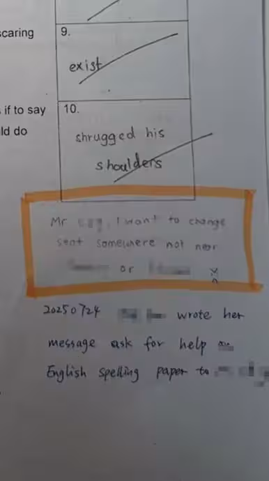 受害者曾多次向老師表態希望換座位,不要坐在兩名施暴者旁邊,包括將要求寫在作業上。(取自8視界新聞網)
