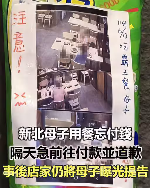 新北母子用餐後忘記付錢,隔天急前往「付款並道歉」,事後店家仍將母子曝光提告