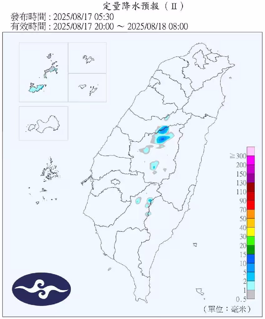 (圖/氣象署)氣象署指出,周一、周二南方雲系北移,水汽增多,環境較不穩定,台東、屏東有局部短暫陣雨或雷雨,其他地區午後有局部短暫雷陣雨,且對流發展範圍較廣、局部雨勢亦較明顯,其中在西半部及其他山區有局部大雨,南部有局部短延時豪雨機率;清晨至上午西半部有零星短暫陣雨。