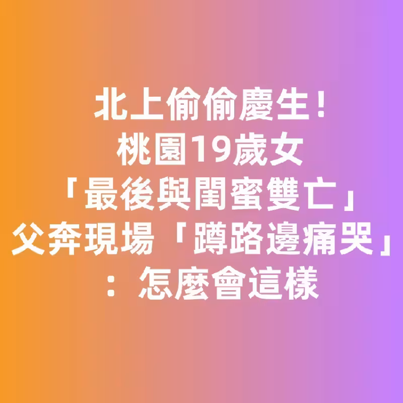 北上偷偷慶生!桃園19歲女「最後與閨蜜雙亡」...父奔現場「蹲路邊痛哭」: 怎麼會這樣