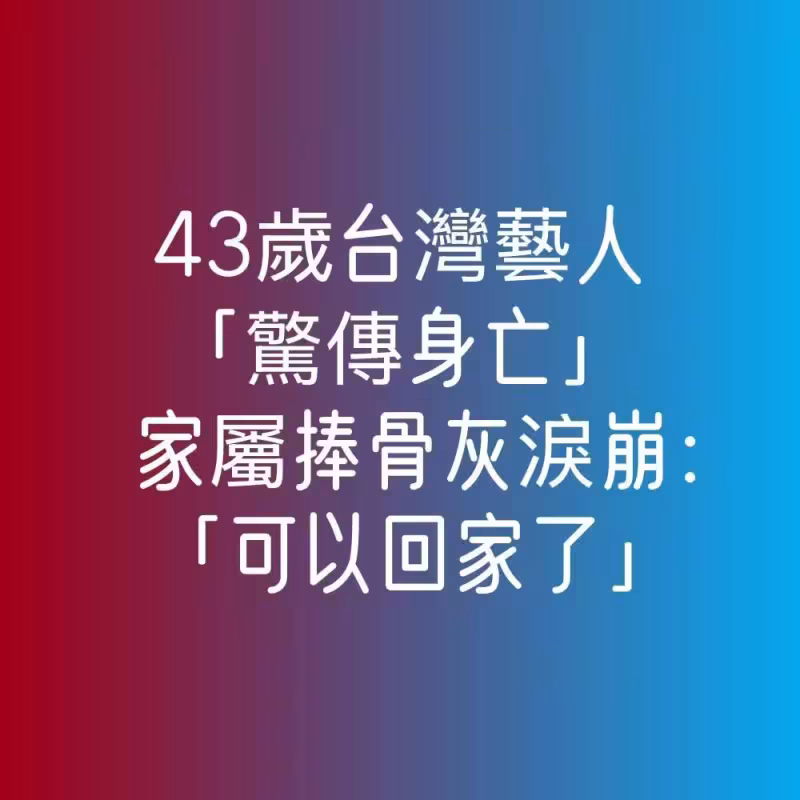 43歲台灣藝人「驚傳身亡」死因曝光 家屬捧骨灰淚崩:「可以回家了!」