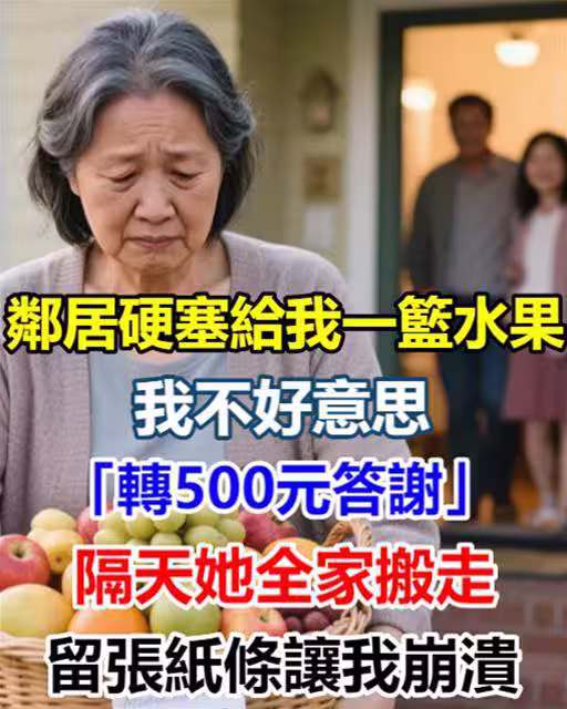鄰居硬塞給我一籃水果!!我不好意思「轉500元答謝」,隔天她全家搬走,留張紙條讓我崩潰了