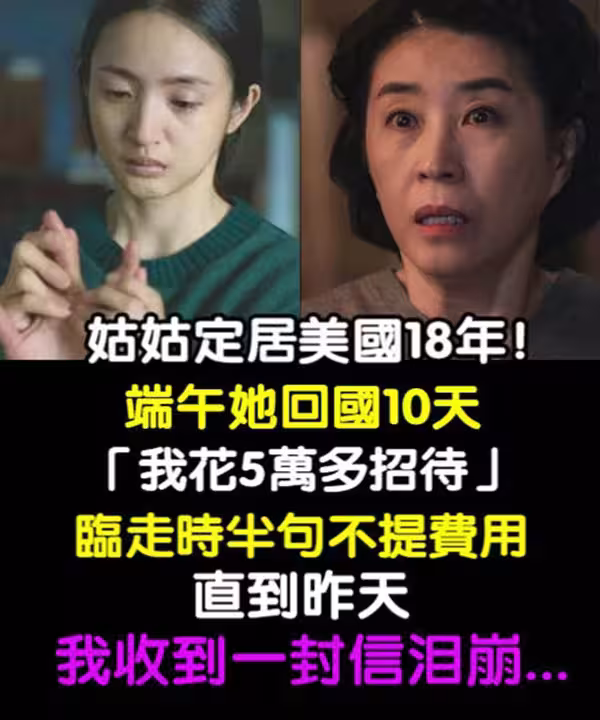 姑姑定居美國18年了!!端午節她回國十天「我花五萬多招待」臨走時半句不提費用「昨天我收到一封信」淚崩