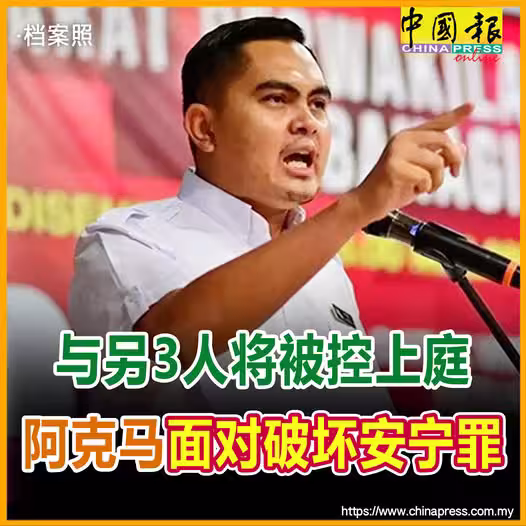 與另3人將被控上庭 阿克馬面對破壞安寧罪