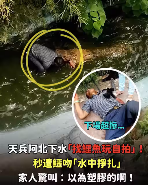 天兵阿北下水「找鱷魚玩自拍」!秒遭鱷吻「水中掙扎」家人驚叫:以為塑膠的啊!