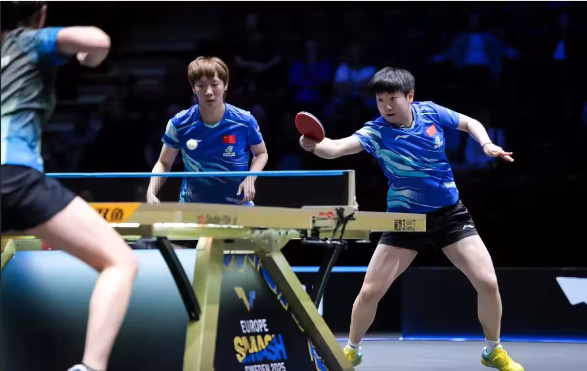 率先進行了一場女雙比賽,孫穎莎/王曼昱3-0戰勝跨國組合單曉娜/吳詠琳,三局比分為11-8、11-5、11-5,整場比賽僅耗時19分鐘,孫穎莎/王曼昱展現出壓倒性實力。