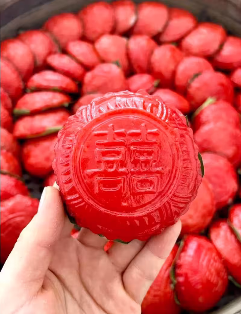 每逢春節、元宵節,或者是結婚、滿月酒、祝壽、喬遷等喜慶的節日,家裡都會製作和食用紅團,象徵著吉祥如意與美好祝願。