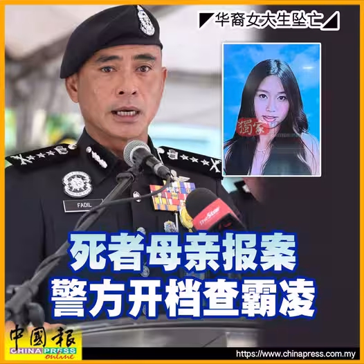 (吉隆坡22日訊)警方證實,針對「華裔女大生疑被霸凌墜亡」案,將援引霸凌條文開檔調查!