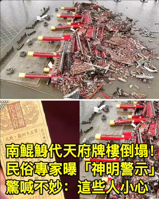 颱風丹娜絲重創台灣西南部,尤其台南市災情慘重,不僅傳出路樹倒塌、屋頂被吹飛的狀況,擁有逾40年歷史的南鯤鯓代天府牌樓更是不敵強風被吹垮,12根檜木轟然倒塌,讓當地居民難以置信,民俗專家廖大乙提醒,牌樓倒塌具有一種「警示」意涵,象徵著神明威信被挑戰,「作惡多端的人要小心了」。