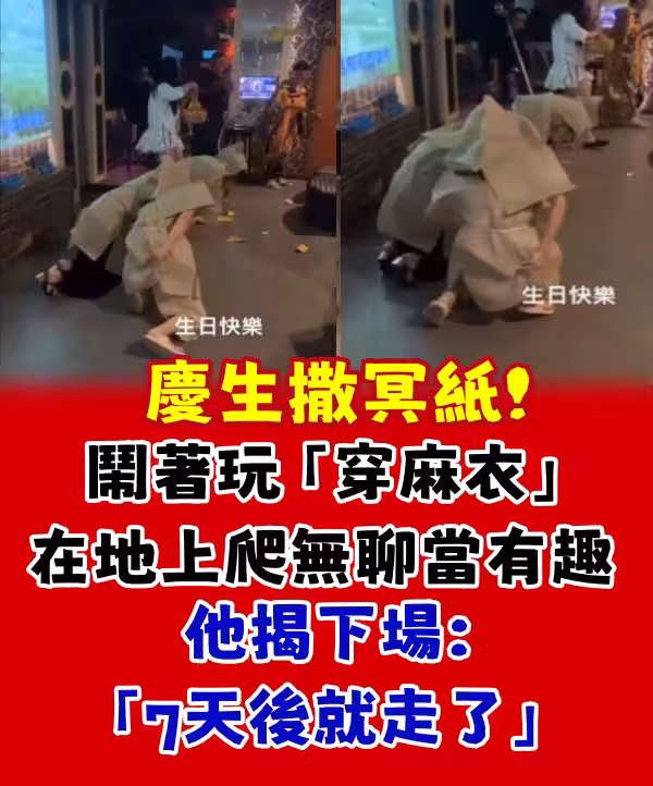 慶生撒上冥紙!!鬧著玩「穿麻衣跪地上爬」...他揭下場「7天後就走了」