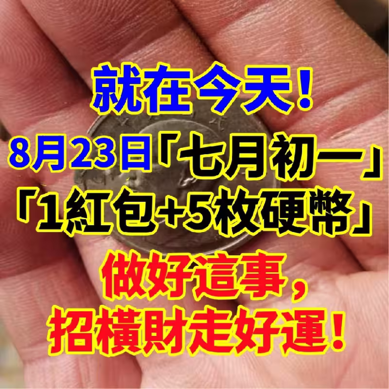 就在今天! 8/23日「七月初一」準備「1個紅包+5枚硬幣」做好這事,招橫財走好運!