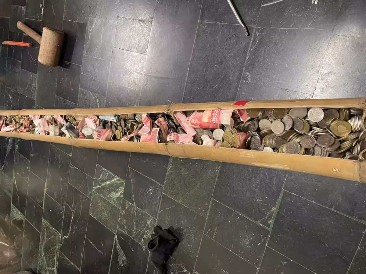 真的敲竹槓!160公分竹筒「塞滿硬幣紙鈔」有夠狂 剖開細數「多到2個人數不完」羨煞上萬網友