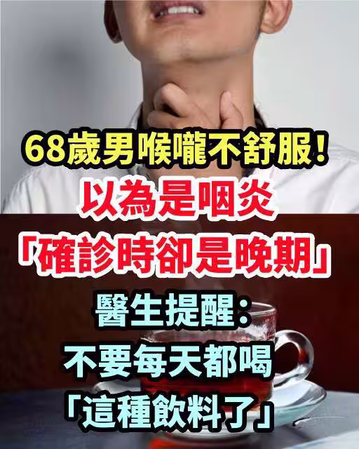 68歲中年男喉嚨不舒服!!以為是咽炎「確診時卻是晚期」 醫生提醒:不要每天都喝「這種飲料了」