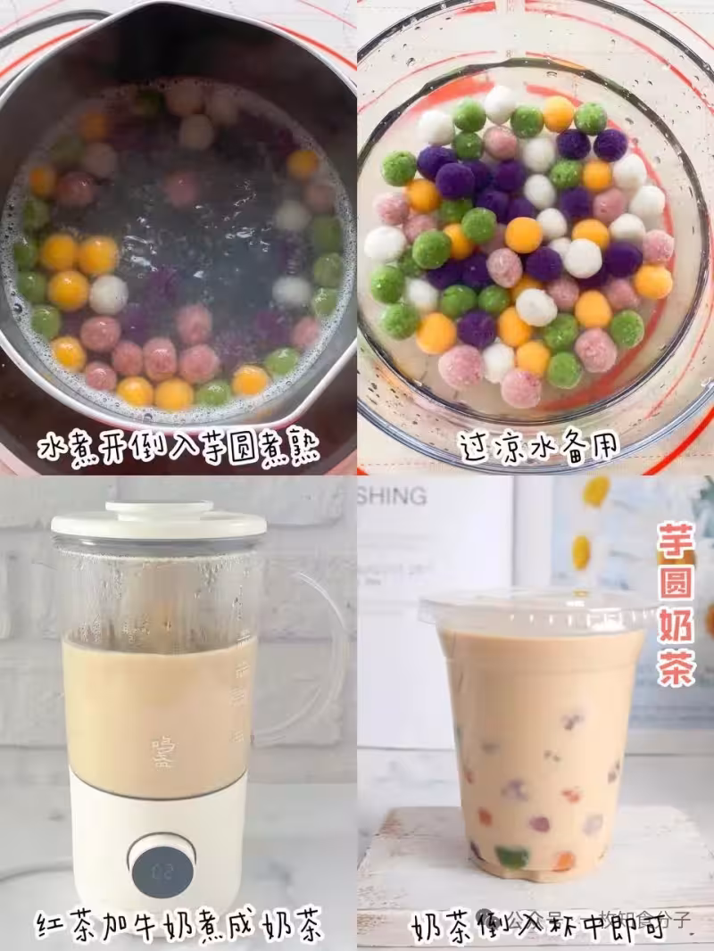 食材:三色芋圓80g|牛奶300ml|紅茶包2個|煉乳15g