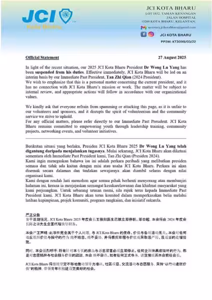 哥市國際青商會宣布 會長王祿陽遭即時停職