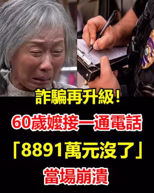 詐騙再升級!!60歲啊嬤接一通電話「8891萬元沒了」當場崩潰!!