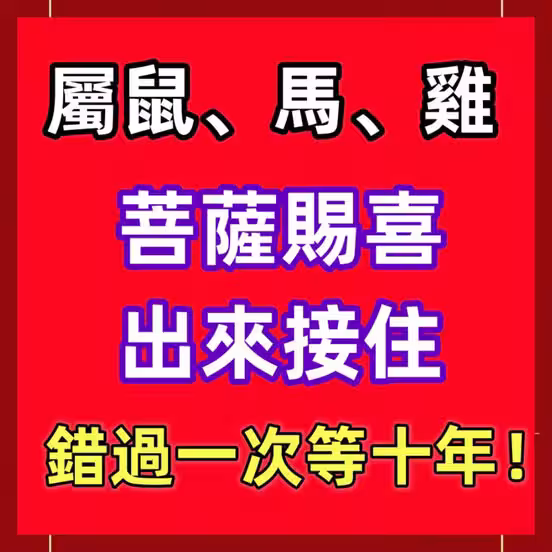 『恭喜屬鼠、馬、雞的人』菩薩賜喜,出來接住,錯過一次等十年!