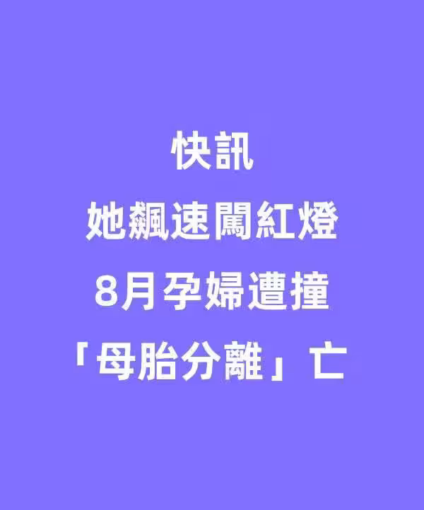 快訊/她飆速闖紅燈 8月孕婦遭撞「母胎分離」亡。