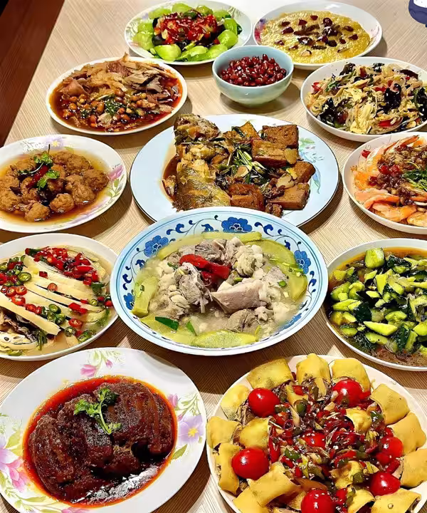 餐桌上擺滿了我的拿手菜:油亮誘人的紅燒肘子、清蒸鱸魚還有幾個清爽的時蔬小炒,可謂是色香味俱全。