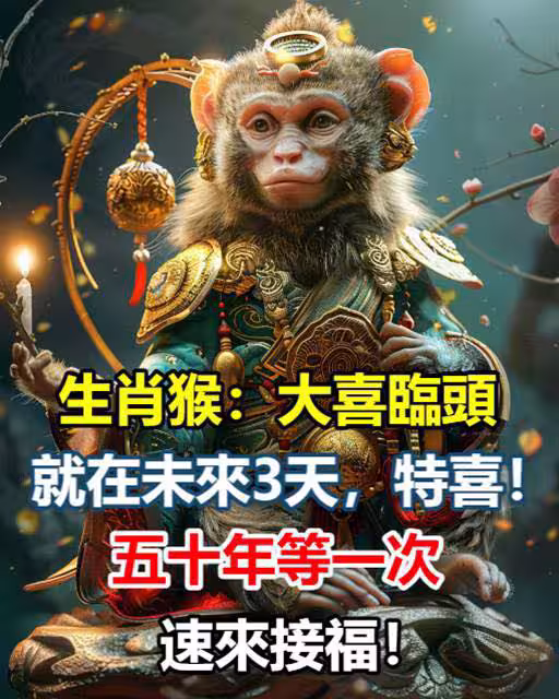 生肖猴:大喜臨頭,就在未來3天,特喜!五十年等一次!