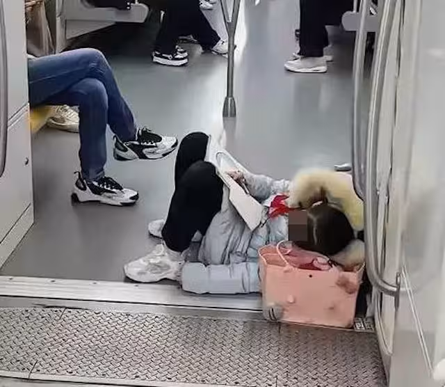 撐不住了!小女孩「直接在車廂地板」呼呼大睡 近看「手緊握1物品」網鼻酸:悲哀的社會