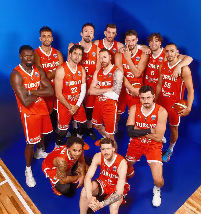 土耳其隊陣中的申京、博納是現役NBA球員,鄂圖曼、科克馬茲、尤爾特塞文也都打過NBA,他們的整體實力很強,申京本屆大賽更是不可阻擋,場均19.7分9板7助攻,命中率70.6%,帶領土耳其隊3戰全勝,他們先是贏了拉脫維亞隊20分,隨後又贏了捷克隊14分,今天凌晨他們大勝了葡萄牙隊41分,3場比賽凈贏75分,力壓3場比賽凈贏49分的塞爾維亞隊,排名A組第一。