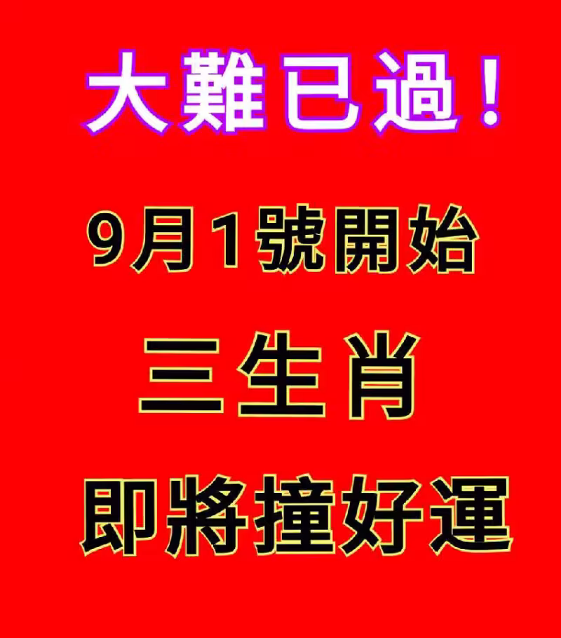 大難已過! 9月1號開始 三生肖 即將撞好運!