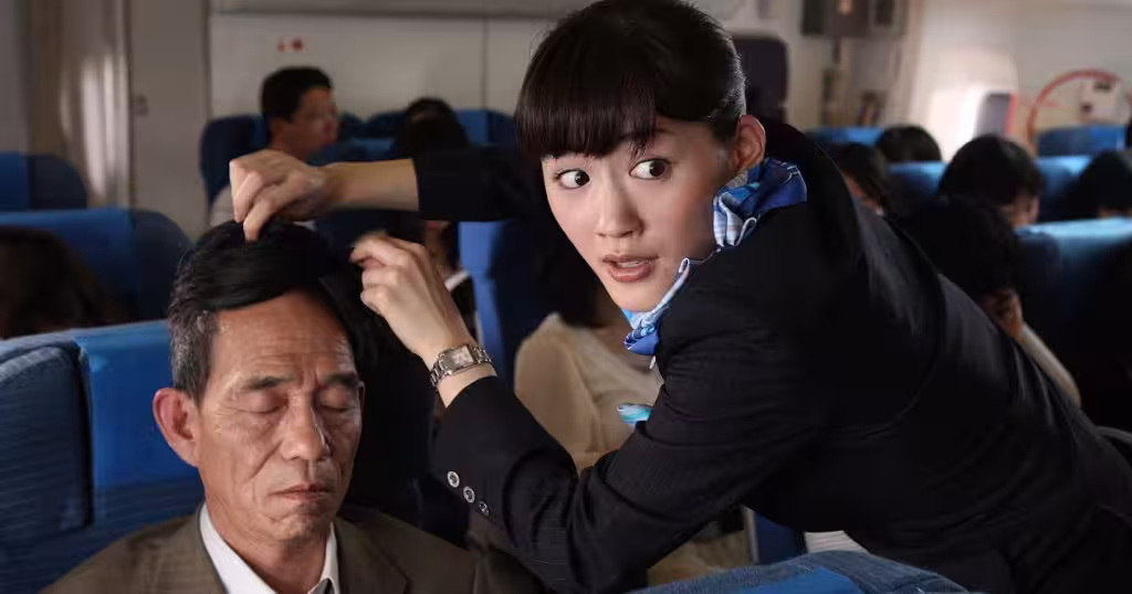 難道是客人假髮歪了?示意圖非當事人,翻攝自《ハッピーフライト》。