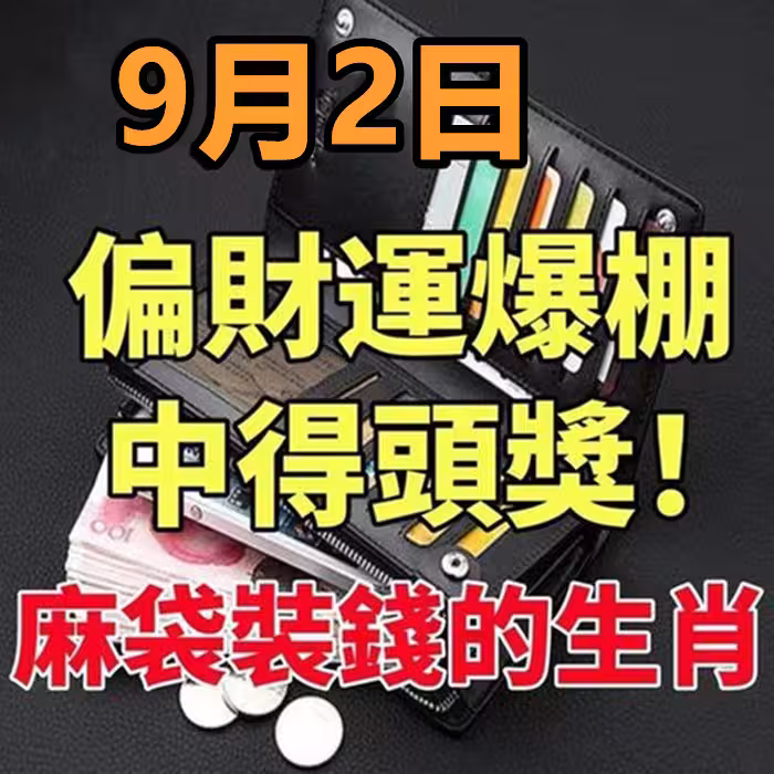 9月2日偏財運爆棚,中得頭獎!用麻袋裝錢的生肖