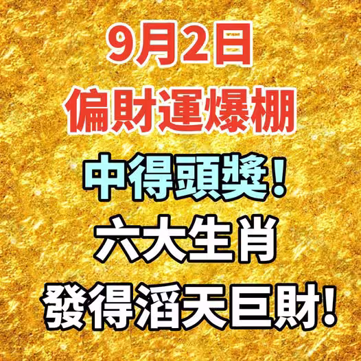 9月2日偏財運爆棚,中得頭獎!六大生肖發得滔天巨財!