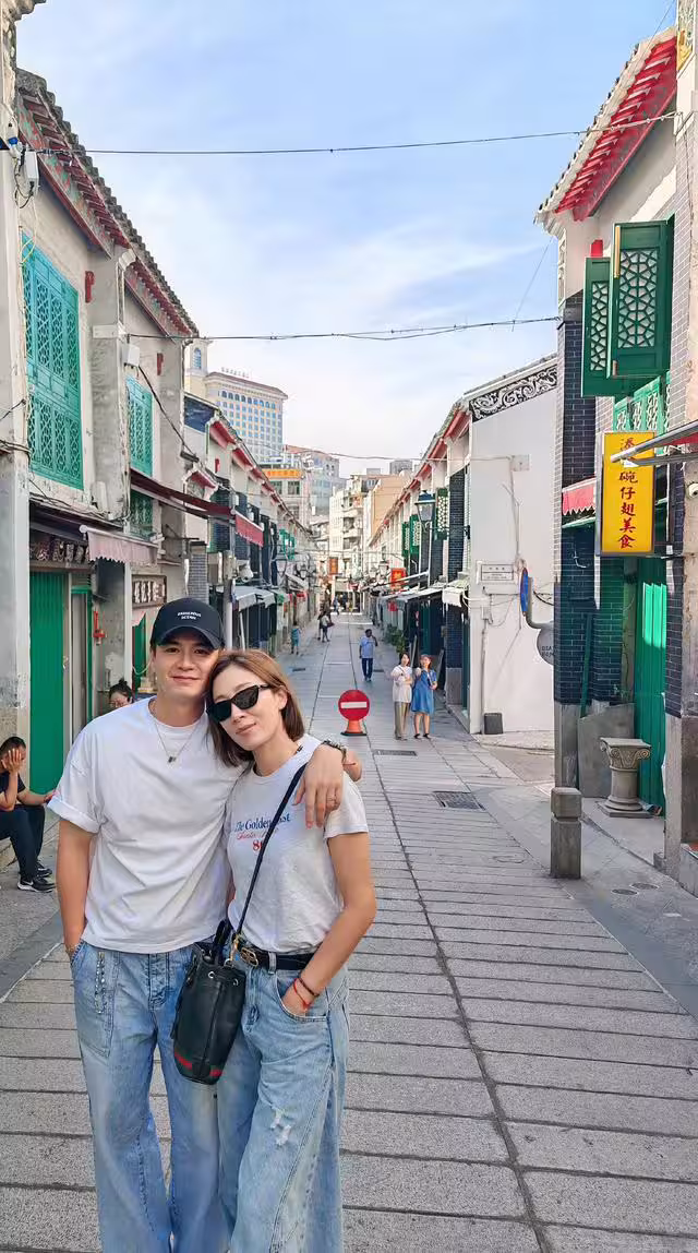 從二人的合照中看得出,當天楊茜堯打扮的很低調,穿著更是以舒適為主,白色的T恤搭配牛仔褲,頭上戴著棒球帽,而羅子溢幾乎和妻子是情侶裝,楊茜堯的手中還有一小束花,想來是羅子溢為其特地準備的。