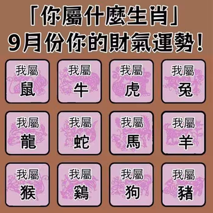 「你屬什麼生肖」9月份你的財氣運勢!!