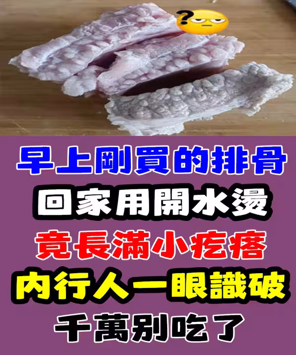 買的時候,排骨似乎並無異樣,可回家用開水一燙,令人震驚的一幕出現了:原本看起來正常的排骨表面竟長滿了 「小疙瘩」那一刻,滿心的期待瞬間被疑惑和擔憂取代,不禁讓人質問:這到底是怎麼回事?