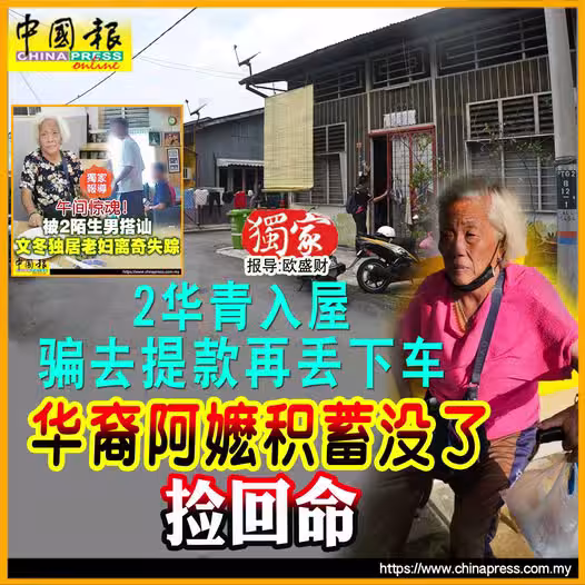 2華青入屋 騙去提款再丟下車 華裔阿嬤積蓄沒了 撿回命