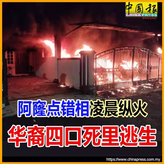 阿窿點錯相凌晨縱火 華裔四口死裡逃生