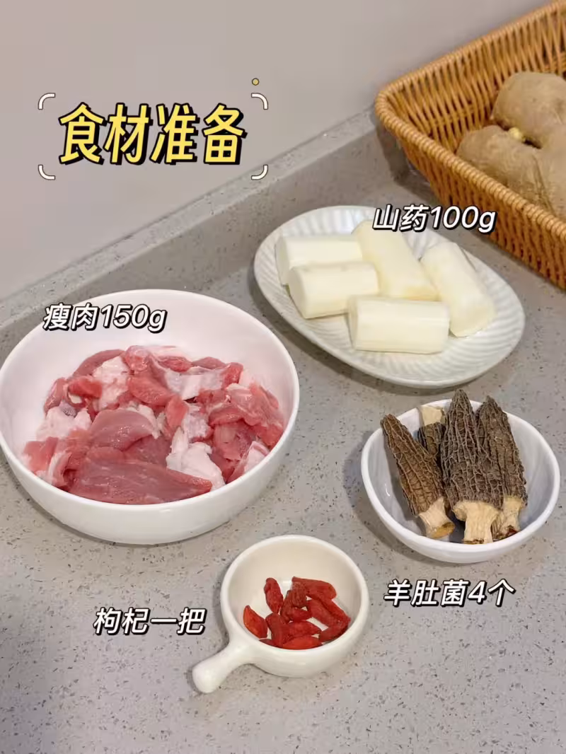瘦肉、山藥、羊肚菌、雞蛋、枸杞